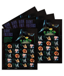 Bats. the only mammal capable of full-powered flight. are vital to controlling insect pests that annoy humans and threaten farm crops.?A single bat can catch from 500 to 1000 insects such as mosquitos. moths. beetles. gnats. and crickets. in just one hour.?Issued in time for Halloween invitations. these stamps were designed to promote the hobby during National Stamp Collecting Month.
