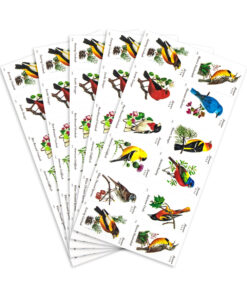 Illustrator Robert Giusti depicted the Western Meadowlark and other songbirds in this set perched on branches or fence posts.
