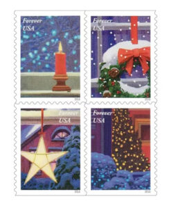 Indoors. festive decor abounds. Holly-red candles flicker in windows. and a six-foot Fraser fir Christmas tree fills the room with fresh evergreen aroma. Multi-colored lights twinkle. reflecting off silver tinsel. The tree bears a mix of family heirlooms and colorful baubles. crowned with a light-up gold star. reminiscent of the Star of Bethlehem.