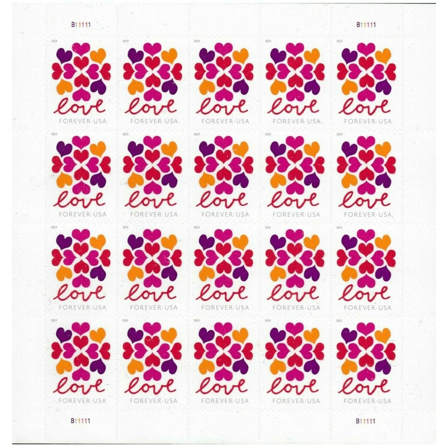 The Hearts Blossom stamp shows 12 colorful hearts in a palette ?a of red. purple. orange and pink ?a intended to create a happy and positive feeling. Art director Antonio Alcal?????? designed the stamp.