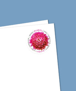 Like the six previous global forever stamps issued since the first appeared in 2013. the new stamp is a round self-adhesive with die-cut simulated perforations.