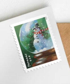 The new Snow Globes stamps were designed by the renowned artist Gregory Manchess. who employed oil paint to capture the magical essence of Christmas within four distinct scenes. The stamps feature a snowman. Santa Claus perched on a chimney. a magnificent deer. and a Christmas tree.