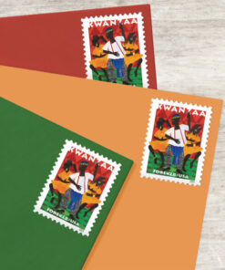 This collectible comes with everything you need to celebrate the issuance. It contains the First Day of Issue Ceremony Invitation. the First Day of Issue Ceremony Program. a Digital Color Postmark First Day Cover. and a pane of 20?Kwanzaa?Forever? stamps.